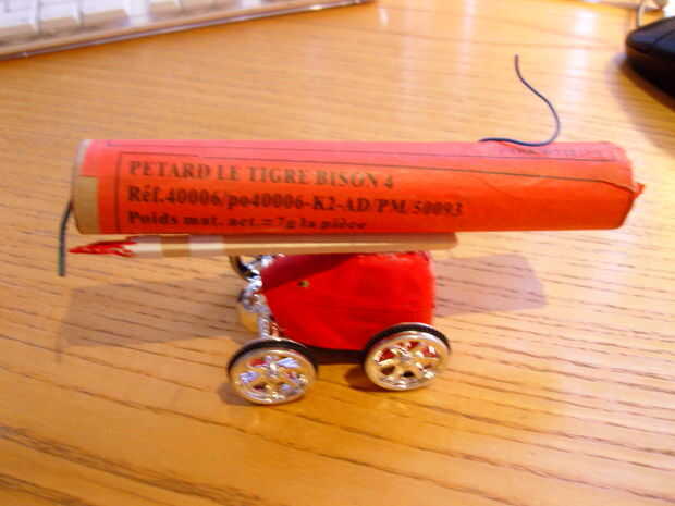 me di cuenta de mi coche RC podría ser utilizada para dejar caer un petardo, las dos puntas en la parte superior se utilizan como guías para sostener el petardo y luego con un fuerte freno el petardo simplemente desliza apagado, luego explota después de que el coche ha hecho una escapada rápida! por alguna razón que el cuadro de youtube está roto así que aquí está el enlace de El VIDEO