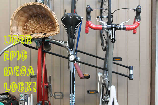 Yup, tuve un par bicicletas robadas de mí. Por lo que apuesta sus bollos que no sólo estoy increíblemente enojado con la persona que subí mi valla y robaron mi bicicleta, estoy super paranoico también. Estamos en modo de bloqueo completo de la crisis en Chez Angie... tanto es así, habría pensado alguien vino y arraigada a través de mi nevera y se sentaron alrededor y visto mis nuevos episodios de amas de casa reales en mi Tivo. Pero bueno, todo lo que me gusta es que nunca me duele para ser extra precavido. En cuestión de horas después de que el robo tuvo lugar, puse en un sistema de alarma en mi casa y motion sensor se enciende mi patio y llevó todas nuestras bicicletas dentro de la casa. Pero manteniendo nuestro salón completo surtido de motos no es exactamente una solución a largo plazo. Que necesito poder mantener todos mis bicis (y las bicis de mi novio) fuera y se sienten cómodos en el hecho de que el pedazo siguiente de escoria que salta y entra a mi jardín será super anticuado que no tengan ninguna de mis bienes. Tener 4 U-cerraduras con 8 llaves (porque vienen en pares) no es la solución para mí tampoco. ¿Y 4 bloqueos? puede conseguir costoso!