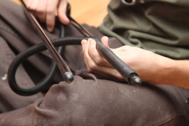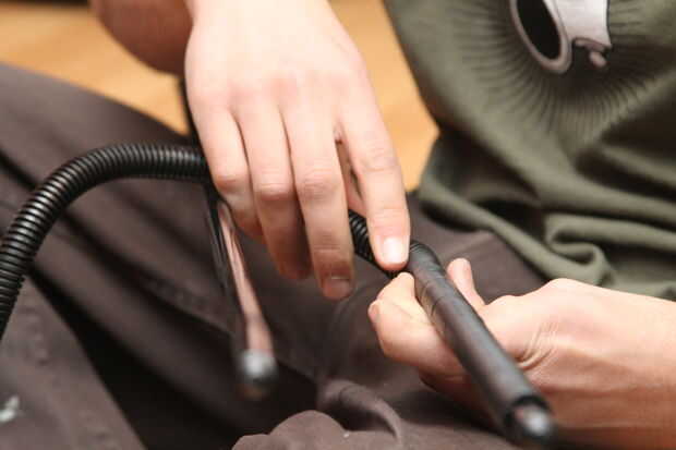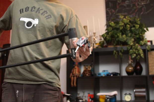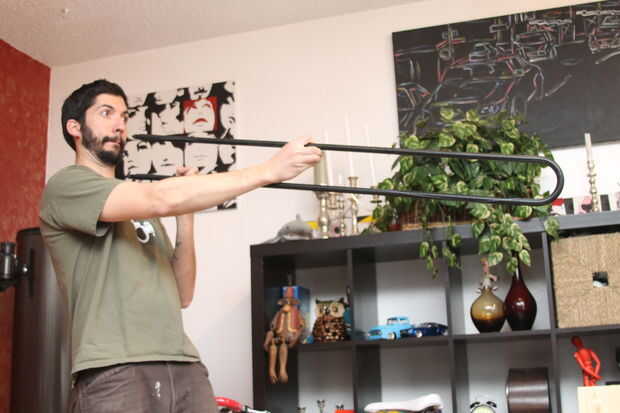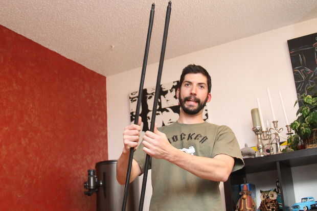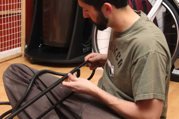 Para ello, hemos hecho uno largo corte a lo largo de la tubería por lo que nos podríamos deslizar sobre la barra metálica.