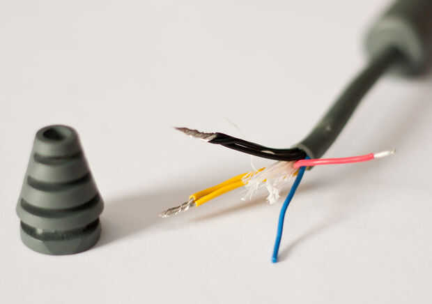 Lo revelan cuatro cables de colores, que corresponden obviamente a los alambres internos y líneas que hemos visto en fotos anteriores.
