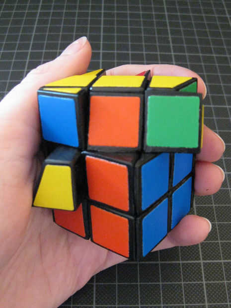 Un cubo de Rubik es un rompecabezas de mano. Cada una de las seis caras tiene nueve cuadrados de seis colores diferentes. Las caras o bien pueden girar en sentido horario o antihorario, por lo que después de pocas vueltas hay varios colores en cada c