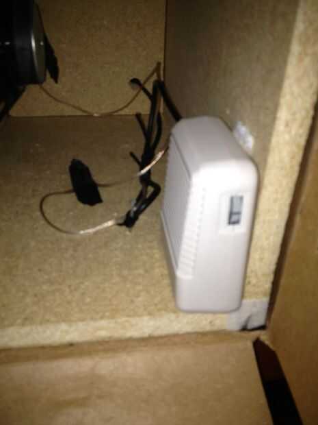 Tomar el amplificador y colóquela cerca del borde de la caja donde no hay ningún muro, esto es para que podamos tener acceso al control de volumen sin necesidad de abrir la caja cada vez. Fijar todos los cables con el sujetacables y use Velcro para mantener abajo el amplificador.