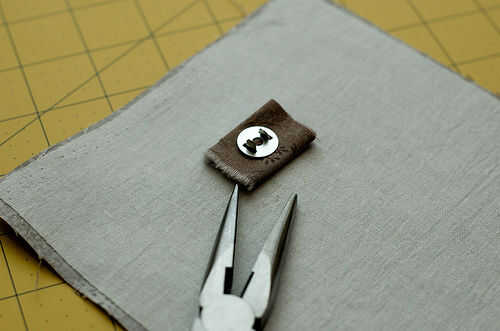 Coloque el botón a través de este y agregue un pequeño pedazo de tela para actuar como una "arandela" que reduce realmente la fuerza que actúa sobre el tejido. ¿Lo que significa? Impediría que la parte superior de tela Estimado rasgar de la zona cerca del botón después de uso frecuente.