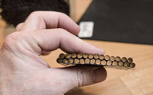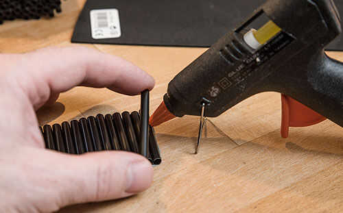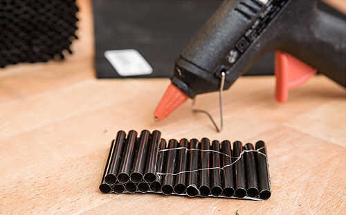Usar una pistola de pegamento para unir el la segunda fila de paja a la primera. Obtendrá el mejor resultado por compensación de la segunda fila la mitad del ancho de una paja. Esto también ahorrará un montón de pegamento y permitir que más luz pase a través de la modificación.