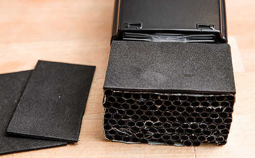 Utilice la pistola de pegamento para pegar el número necesario de capas de espuma encima de la otra para obtener la altura correcta (necesité tres capas para que se ajuste a mi SB-900...)