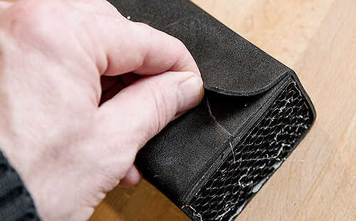 Ahora permite añade una "manguera" a la red para que el modificador puede ser deslizado sobre el flash. Hice mi manguera aprox. 11 cm largo. De esta manera puedo modificar, a qué distancia quiero que la red en el panel de luz y así enfocar la luz a mis necesidades. La espuma debe tener un perfecto ajuste (en mi caso 11 x 24 cm), por lo que no habrá espacios. Una vez la han cortado su espuma en el tamaño correcto, pegamento en su red con la pistola encoladora.