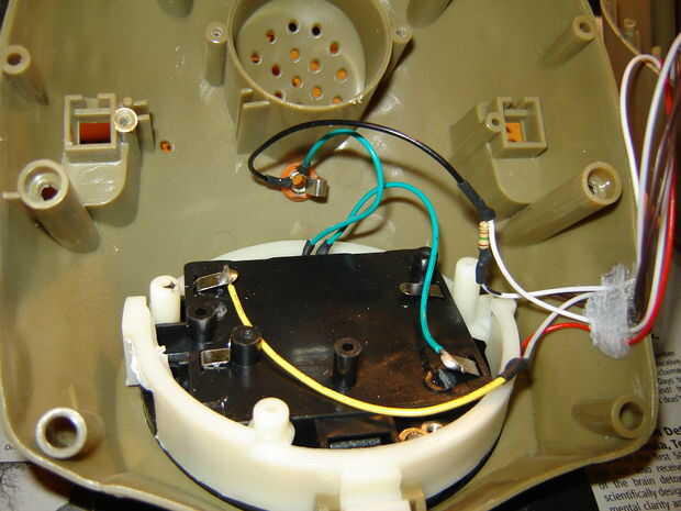 Perforar un pequeño agujero para el conector y había atornillada en su lugar. El cráneo tenía un interruptor on/off, originalmente utilizado para activar el modo demo, por lo que lo uso para encender las baterías internas del on & off. Lo destornilla y soldar cables nuevos a ella. Los LEDs en este cráneo fueron conectados juntos en serie, así que añadido una resistencia de 150 ohm a ellos.