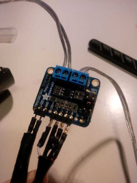 - Reemplacé las patas de la cabecera recta en las entradas con ángulo recto los (ver fotografía). Pensé que esto sería mejor dirigir los cables al instalar el amplificador en el altavoz. Funcionó, pero el enrutamiento de los cables puede ser más fácil si sólo había utilizado los pernos rectos.