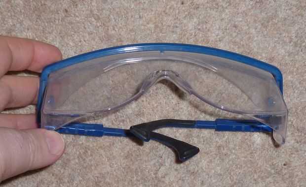 Utiliza un poco pegamento para pegar un pedazo de estireno sobre las gafas de plástico, para actuar como titular.