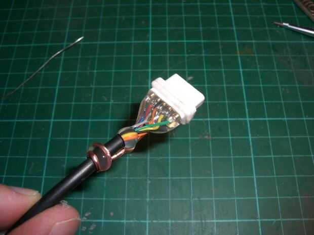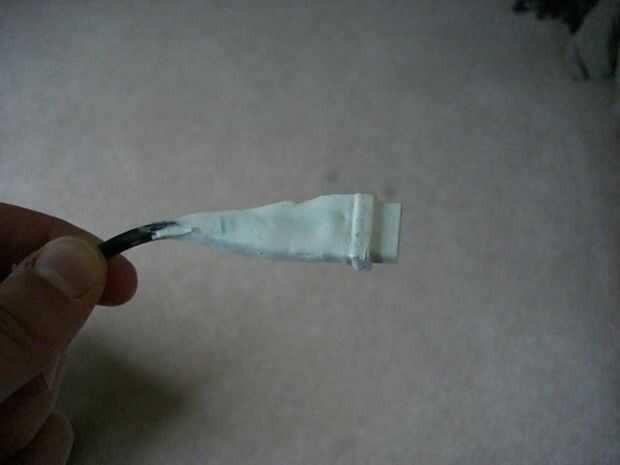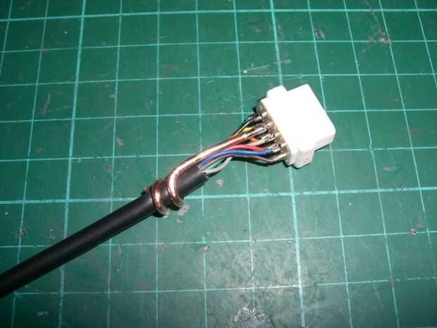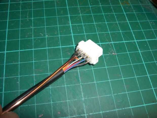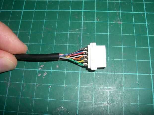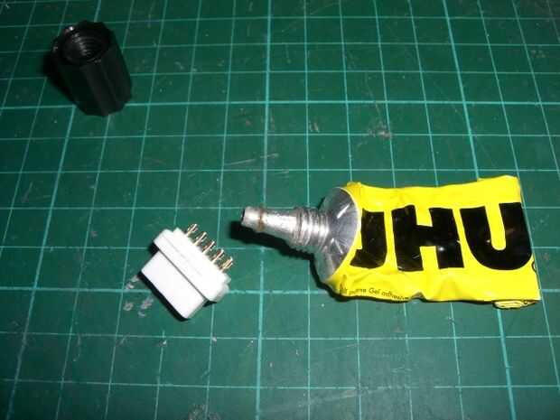 El pasador de repuesto (8) puede utilizarse para hacer un alivio de tensión. Soldar un pedazo corto de alambre de cobre robusto que y el otro extremo firmemente alrededor del cable externo para mantener rígidamente la torcedura. Poner algun pegamento caliente sobre la parte posterior de las patas y la cepa releif para mantenerlo todo junto.