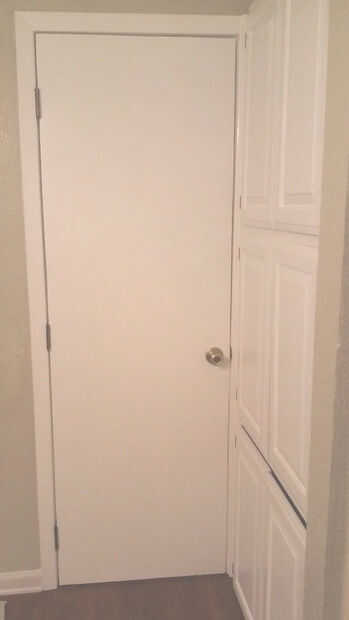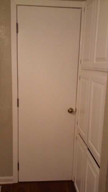 Sin embargo, debido a la distancia entre montantes de la pared, me quedé con una muy buena puerta con un ancho no muy convencional. Hubiera podido, habría comprado una puerta pre-colgado con su propio marco y sido hecho con él.