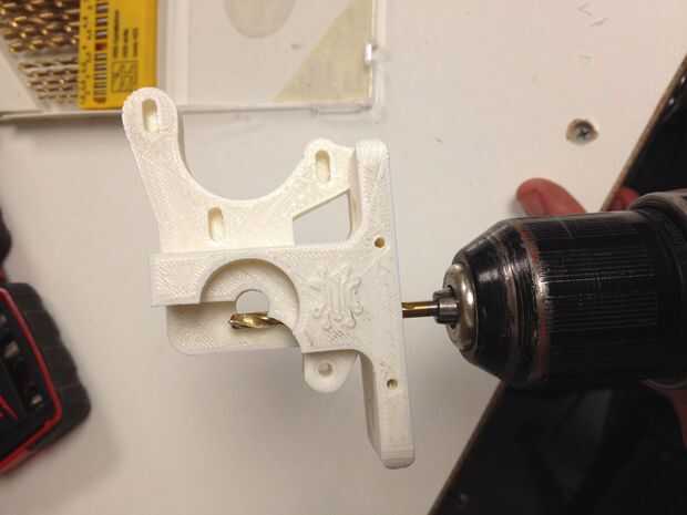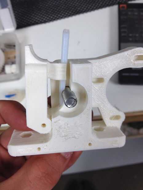 Ahora el agujero en extrusora de Greg es de 3mm (dar o tomar un poco) y el tubo PTFE que es 4mm. Así que el agujero debe taladrar a 4mm para ajustarse al tubo. También el soporte de cojinete rodillo debe taladrar en la parte superior para acortar el tubo en. Para la loca necesita la broca de la roca hasta abajo un poco para cortar la ranura entera, a tomarlo lento.