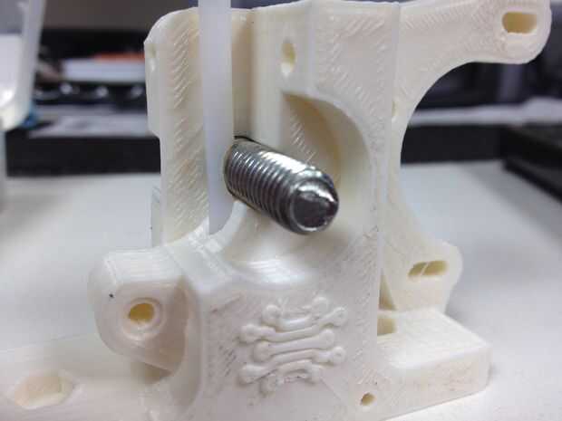 Ahora que los agujeros han sido perforados es tiempo para deslizar el tubo en y asegúrese de que todo alinea correctamente. Desea la porción de 1 pulgada para estar más cercano a la hotend cuando está instalado y desea al ras con la superficie circundante. También encontré que es más fácil alimentar el tubo de la parte inferior en lugar de la parte superior. Luego tomar su hobbed perno (o perno regular) y compruebe el ajuste de la ranura corta. Con la rueda loca del tubo debe ser perfectamente recta con el tornillo de hobbed en su lugar. Si se inclina hacia fuera y está haciendo contacto con el tornillo necesita el tubo de la muesca más. Una vez que estés satisfecho con el ajuste, entonces usted puede comenzar a montar su extrusora.