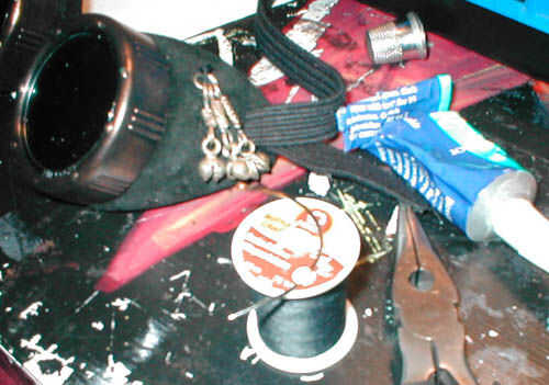 Yo soldado todas las uniones en la pieza de joyería para que no caiga, entonces sólo habían cosido en hilo botón pesado a través de la piel. He utilizado el Fraycheck para sellar el nudo.