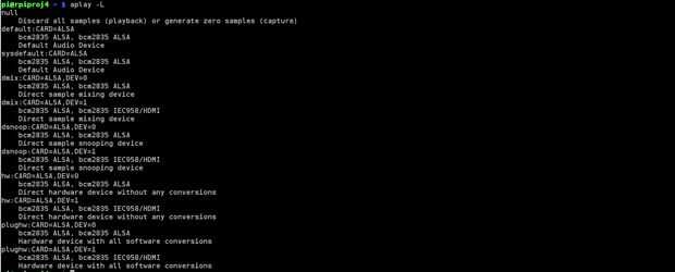 Lista de todos los dispositivos "físicos" de ALSA y dispositivos virtuales de ALSA.
