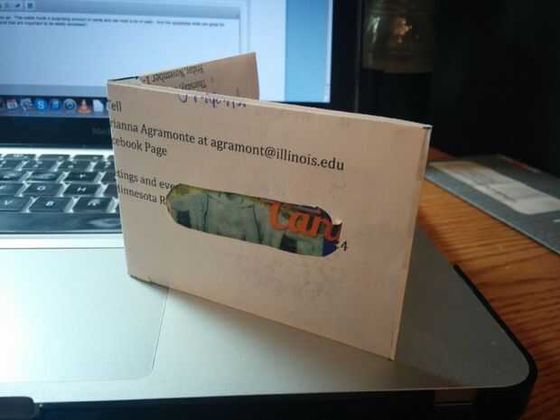 se trata de una billetera de papel basada en el hecho por theRIAA y reforzada con cinta adhesiva. También hay incorporaciones como una ranura de tarjeta de memoria y caso de ID. También puede improvisar sus propio adiciones, que es un paso superior d