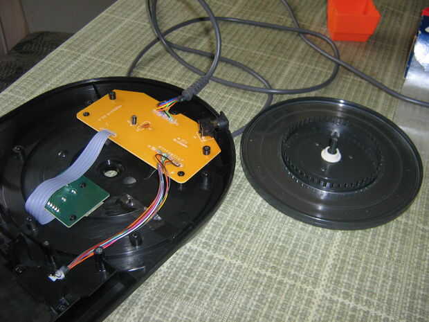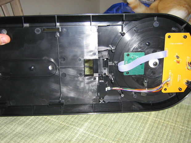 Voltee la parte superior del controlador por lo que usted está buscando en el interior. Desenroscar el tornillo de en medio de la Asamblea de giradiscos y reservar la parte superior. Asegúrese de poner el tornillo en lugar seguro.