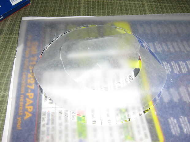 A continuación, coloque un círculo en el papel de cera. Traza alrededor de él con el cuchillo Xacto. Ir lentamente para que hacer un trabajo prolijo, y para que no deslice el cuchillo Xacto. Puede utilizar alguna cinta adhesiva y cinta ligeramente el círculo en el papel de cera para que no se mueve. Aunque no lo hice, y llevó a cabo en el lugar muy bien con mis dedos.