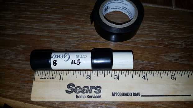 Entonces tendrá que tirar atrás y envolver la parte delantera de las barricas para que se sientan directamente. Desea que el borde delantero de la cinta en 2.5" de la parte posterior. Esto hará que no se pegue fuera del cilindro. En la imagen, puede ver que mina es de 2,75 pulgadas. Esto funciona bien, pero es visible cuando se instalan los barriles. Esto tomó aproximadamente 11,5 vueltas de cinta para caber firmemente.