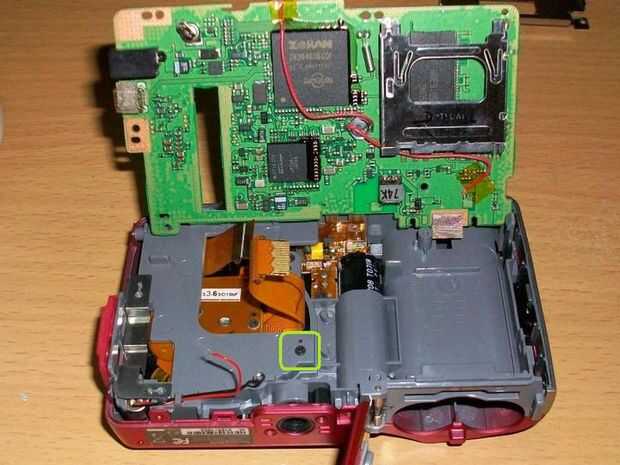 4) Extraiga el tornillo restante y luego desoldar el siguiente por encima para que levante la placa de circuito arriba Usted puede elegir desoldar la conexión entre la Junta y el flash pero el proceso es un poco complicado así que le sugiero que sólo Levante la Junta hasta para Desenroscar la carcasa de plástico y exponer la parte del lente de la cámara.