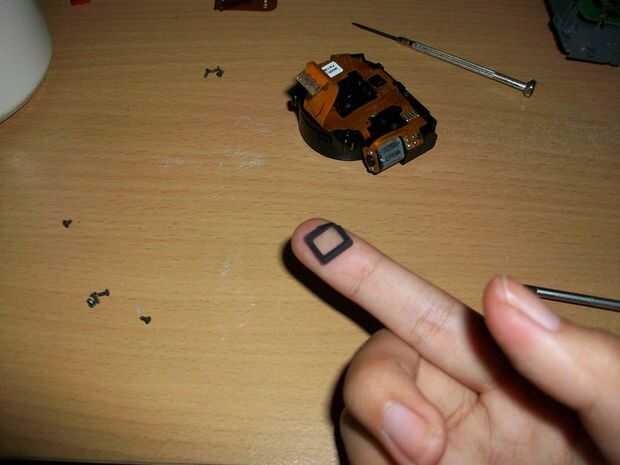 5) Levante la placa de circuito con cuidado y desenrosque la tapa de plástico gris de la cubierta para retirar la cubierta y exponga el lente donde el CCD está conectado a. Tornillos que quedan ocultos en algún lugar pero es torcedura apenas visible, la cámara puede detectarlos.
