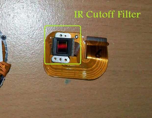 9) desde este punto usted podrá ver el filtro de corte IR sentados sobre el CCD. Observe el color "rojizo" del filer.