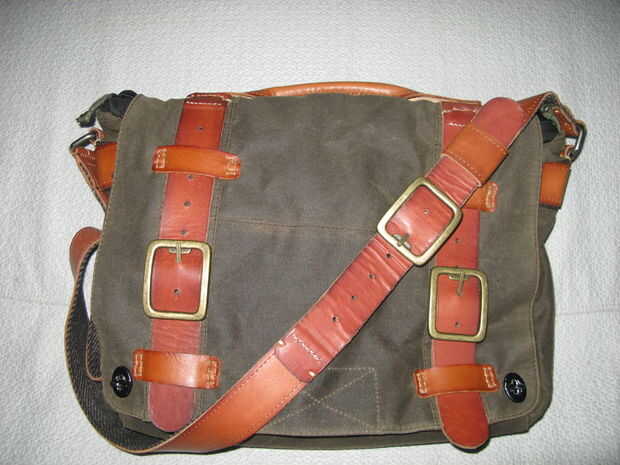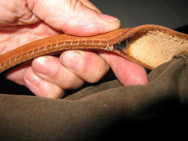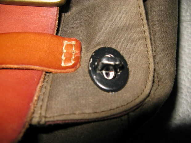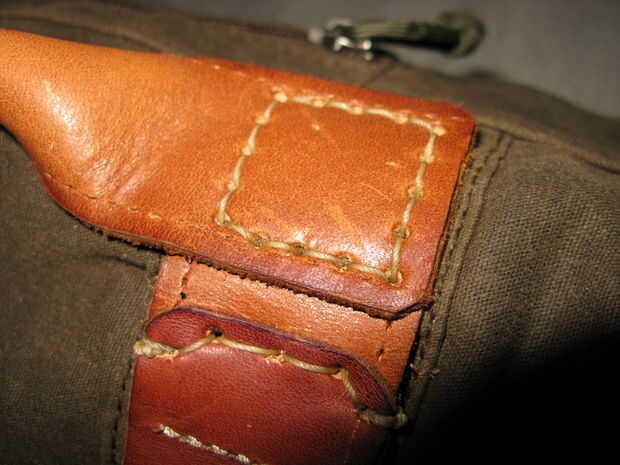 Vamos a empezar con el exterior, encontré algunos cinturones de cuero frescos con hebillas de latón en el mismo almacén de descuento y decidió que fuera necesario más "bolso de la silla de montar" mira con una empuñadura funcional. Estas correas fueron alineadas con algún tipo de tela de hueso de arenque que funcionara bien para una correa de recambio. El otro cuero en el frente y manija tenía la guarnición quitada. Había cosido todo a mano con hilo de cera y una aguja para remendar velas. Hice un mango por costura juntos y caliente pegando un trozo de cuerda interior para darle forma y había conectado como se muestra. Incluso agregué pedazos en la bisagra de correa y lateral para cubrir tanto de la moldura original como sea posible. También he añadido el empuje a través de los sujetadores de metal para reemplazar a los magnéticos debajo de la aleta que sin duda permanecerá cerrado.