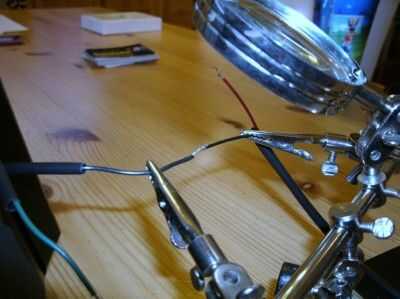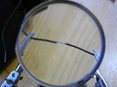 4. alambre pegamento no es que fuerte, por lo que había reforzado el vínculo por epoxy que fluye sobre la conexión. Asegúrese de que la conexión eléctrica está allí antes de hacer el epoxi!