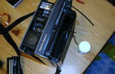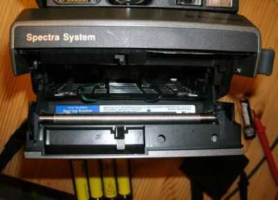 2. a continuación conecte el cable a los contactos de la batería dentro del compartimiento de la película. Un par de alicates de punta son grandes para torcer el alambre en los postes.