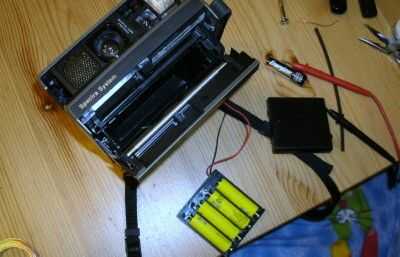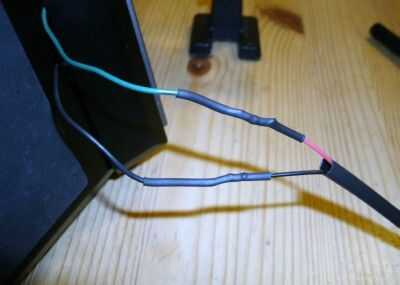 6. soldar los cables del paquete de batería a los cables de los contactos de la batería. Preste atención a la polaridad! He terminado estas conexiones con alguna tubería del encogimiento del calor, pero cinta eléctrica funcionaría bien.