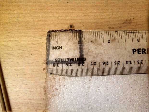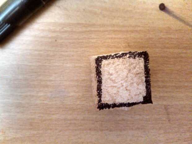 Medir la espuma y haga una marca a 1 pulgada. Después de dibujar un cuadrado y recortarlo.