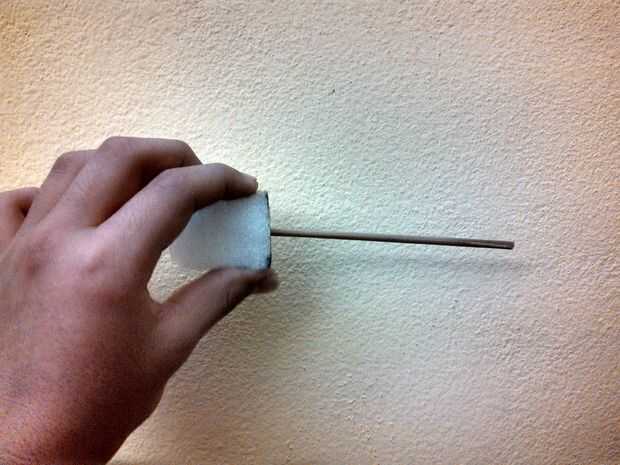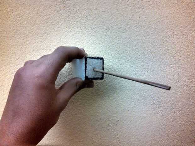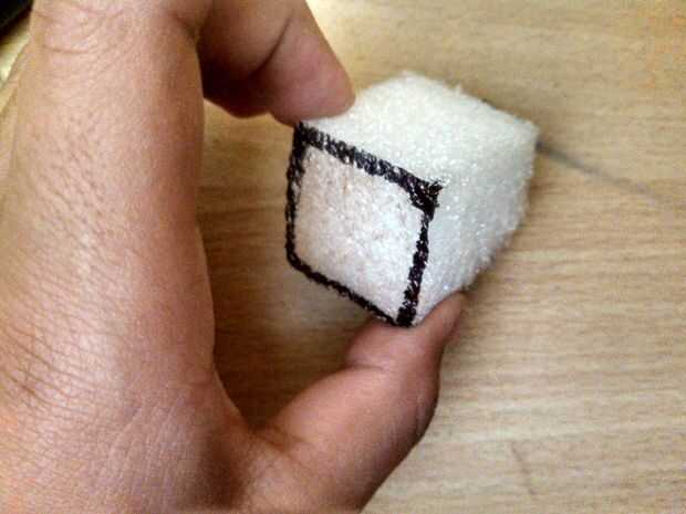 Ahora tome un palo y mida 5 pulgadas y cortarlo. Después de Inserte en el centro del cubo de espuma.