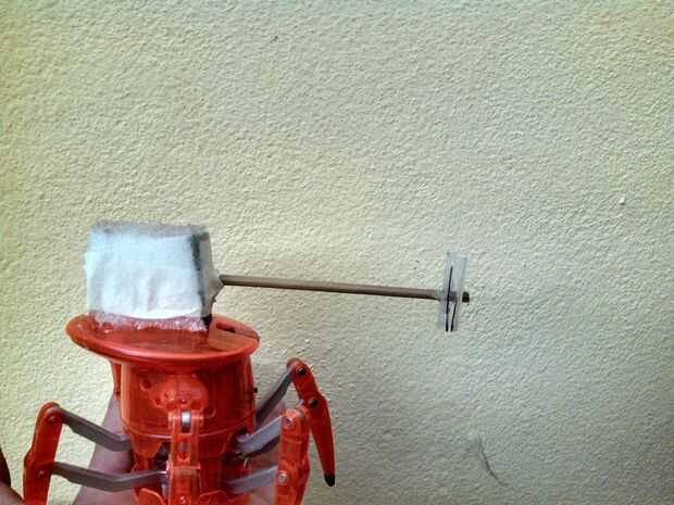 Ahora cuando termine de cortar el cuerpo de la pluma pegar esa pieza para el arnés que se pega ya a la hexbug araña.