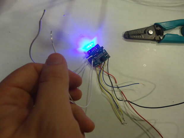 Puede adjuntar extensiones a los cables en el tablero mientras está todavía fuera de la empuñadura. Una vez que tienes cada cable extendido, conseguir el circuito y hilo de rosca los cables a través de la mitad superior de la empuñadura. Ahora usted puede completar los cables soldando las extensiones de sus respectivas partes. Ahora debe tener la placa de circuito en la empuñadura con todos los cables sueltos conectados a sus respectivas componentes.