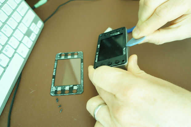 Levante con cuidado el panel posterior de usar un destornillador o algo más suave.