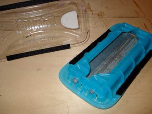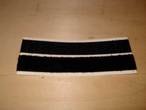 Cortar cada parte del Velcro en la mitad longitudinalmente y se aplican a los rieles de plástico, ganchos en los dientes de un lado al otro.