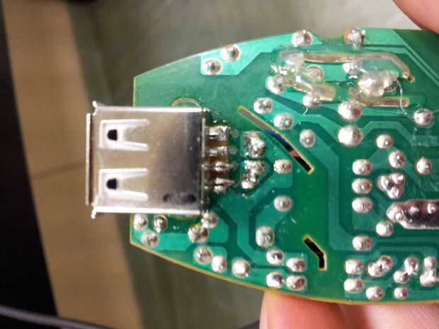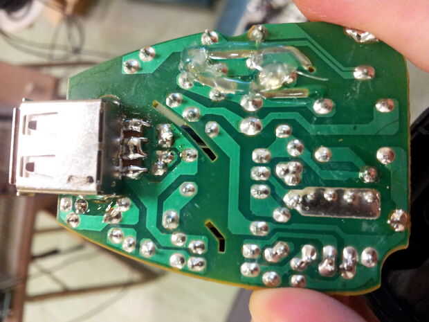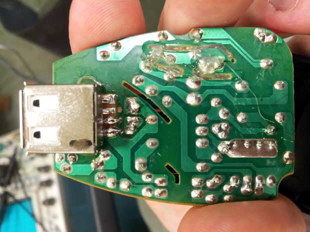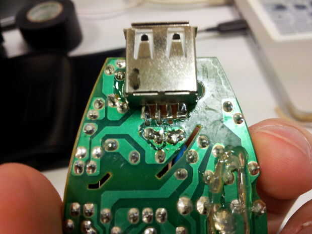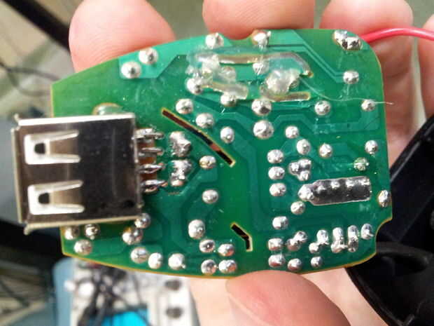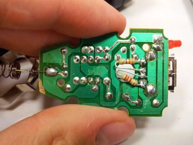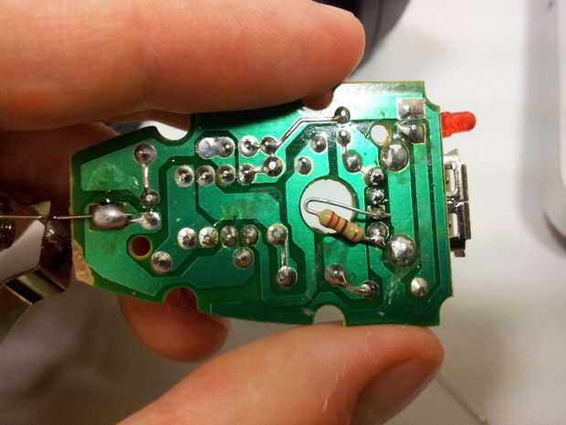 Agregan las nuevas resistencias a los tableros. Cortocircuitar los pines de datos con un poco de soldadura, ya que quería que ambos en el 2.0 V. Lamentablemente no tengo un LG muy calificado, como usted puede ver en las fotos de cargador de coche.