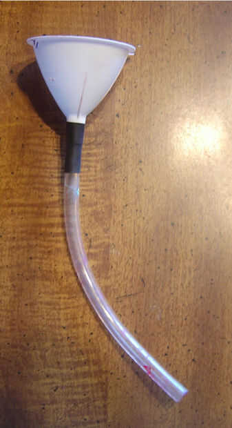 Medir cuánto tubo de vinilo tendrá acceso desde la parte inferior del embudo hasta tocar la superficie de abajo.