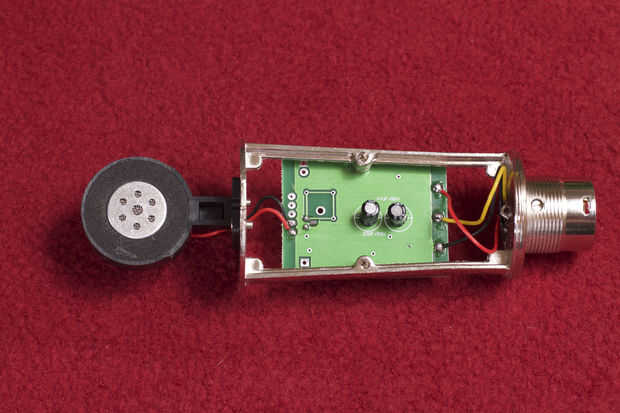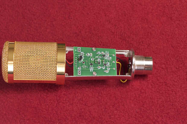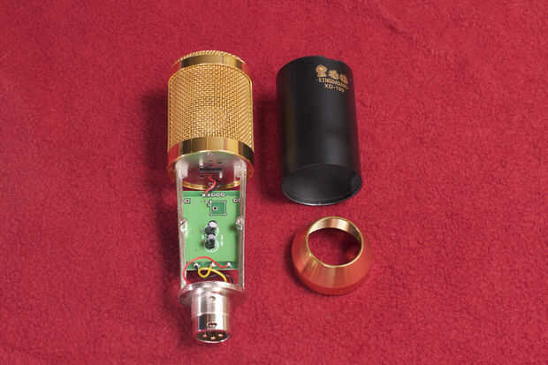 El cuerpo del micrófono y desatornillar la base. Esto le permitirá deslizar el manguito de metal que cubre la zona del circuito. Nota: Puede variar su micrófono. Compré a remolque de éstos de diferentes proveedores y fueron similares pero definitivamente diferente. Después de que el manga es de sacar los dos tornillos pequeños en el tablero del circuito original. Entonces las Naciones Unidas soldar los tres cables inferiores. Reutilizamos estos para colocar la nueva Junta Directiva en el conector XLR. Puede cortar o desoldar los cables de la cápsulas. Los reemplazaremos.