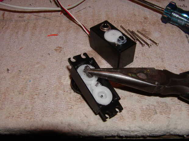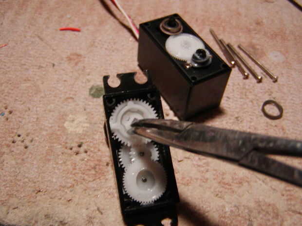 Un servo modificado puede adquirirse en diferentes tiendas de la manía en línea. Hay dos clases de servos, estándar y modificado. Un servo modificado tiene rotación continua.Hay positiva ventaja de utilizar servos para robot transmisión gearsets moto