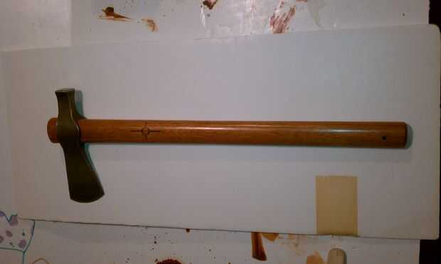 En este punto, he lijado, el acabado de fábrica de la manija. Usé una tinción estándar madera para conseguir el color más profundo que quería. Dos capas.