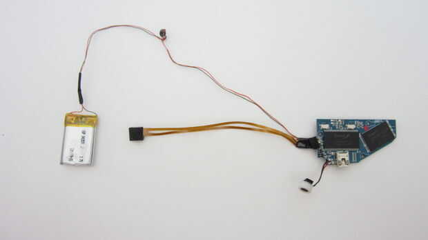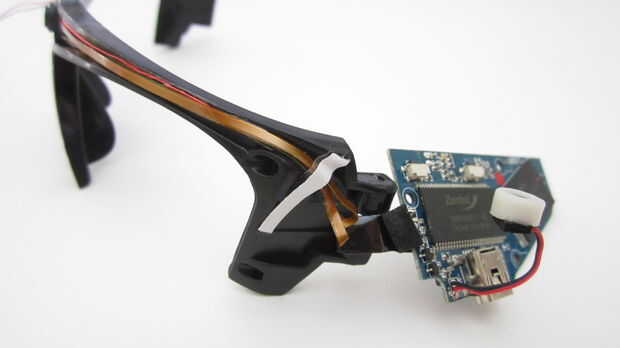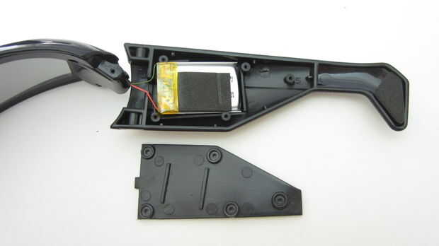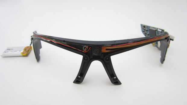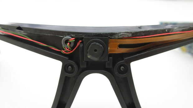 Los templos de los cristales contienen la batería y el circuito. Estas se llevaron a cabo en su lugar con tornillos pequeños. Los templos donde conectado con el resto del bastidor con tornillos. El puente de las gafas contienen la cámara. Las dos partes del bastidor atornilladas y rompieron juntos y debían ser forzadas aparte. La cámara y los cables dentro del marco donde pegan. Afortunadamente, ellos podrían ser suavemente peladas del armazón.