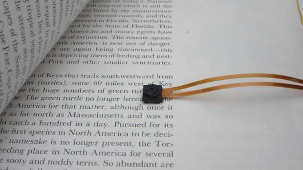Entonces dentro del libro, utilice un cuchillo afilado para cortar los agujeros para la cámara y el circuito. Si el libro es demasiado fino, puede combinar varios libros para formar un compartimiento secreto más grande. Aquí es un buen ejemplo. .