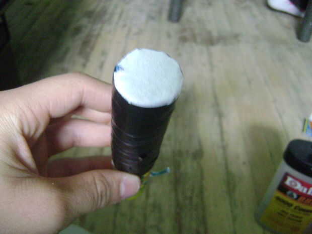 Ahora puede dejarlo como está o ponga una cubierta en la parte superior para detener el derrame. Usé un kleenex y grifo. sólo poner el kleenex en la parte superior y cinta alrededor de la rap.