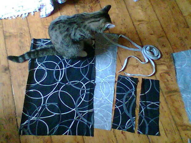 Ahora mira tu tela y cable y pensar (o prueba) Qué tan amplio debe ser el tubo que tela recoger bastante en pliegues sobre el cable. Qué ver y trabajar normal para cerrar y llevar la bolsa. ¿Se encuentra? Luego añadir dos veces la anchura del tubo más borde de costura a la parte superior de la parte principal.