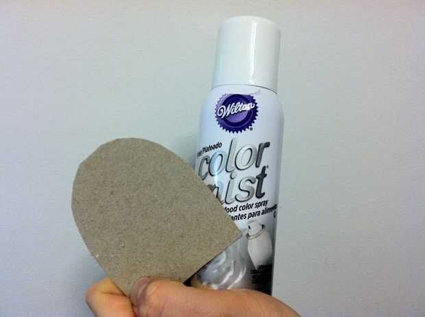 Cortar una "plantilla" de cartón que cubre estómago de Totoro para rociar el aerosol de la niebla de Wilton color sobre la plantilla y dejar su estómago blanco.
