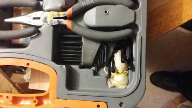 Había intentado diferentes maneras de almacenar herramientas y piezas y finalmente decidió que una cómoda con cajones poco profundos serían la mejor solución. Cosas se oculta completamente hasta que jale el cajón hacia fuera y usted puede encontrar l