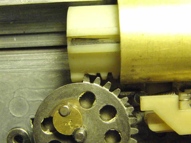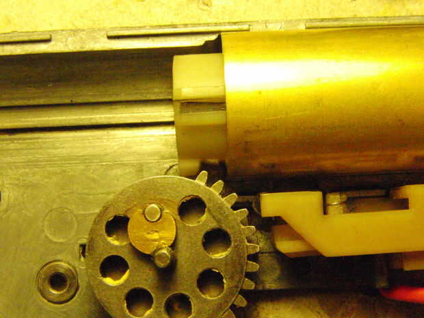 Para solucionar este problema, puede Agregar algún sorbo o Termoplástico elastómero a la cabeza del cilindro (o mi alternativa favorita presupuesto, mousepad espuma), cambiando así la interacción entre el engranaje del pistón y el sector para que los pisos de los dos dientes en cuestión de malla muy bien en el primer contacto, causando menos desgaste y permitiendo su pistón a durar más tiempo.