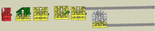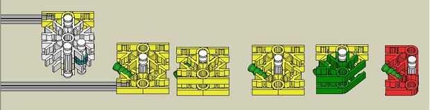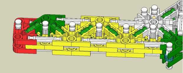 Cuadro 2: Construcción de las piezas como esta (barras de agregar blanco a los conectores en la capa media. Esto no se muestra en las fotos. Asegúrese de que reemplace los dos conectores rojo en la parte delantera del mango con conectores verdes.
