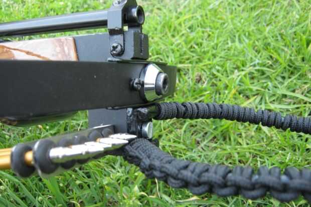 Primero hubo el estribo que hice de una longitud de barra de acero de 5mm que fue soldada con autógena en una ficha de metal, facilitar el perno en el xbow, esto entonces fue envuelto con el paracord.